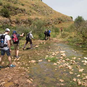 Am folgenden Tag, es war mittlerweile Sonntag der 5. Mai, brachen wir in aller Frühe auf, feierten einen Gottesdienst im Deutschen Pilgerhaus, ließen den Galiläischen See hinter uns und fuhren das Jordantal hinunter. Nach einem Abstecher in Jericho mit Besichtigung des Versuchungsberges führte uns unser Weg zur Taufstelle, wo Jesus getauft worden war. Hier erneuerten wir unser Taufversprechen und durch Untertauchen gab ich dem Ereignis noch eine feuchtpraktische Note. Dann ging es zu Ausgrabungen nahe am Toten Meer in Qumran, wo Schriftrollen aus den Jahrhunderten vor Christus gefunden worden waren.
