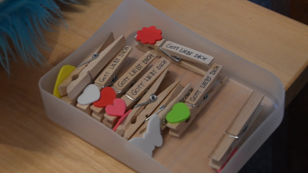 Zur Gabenbereitung zogen die Kinder in die Kirche ein, wo sie von Dr. Volgger zum Vater unser zum Altar eingeladen wurden. Als Erinnerung an den Gottesdienst erhielten alle Kinder eine Klammer mit der Aufschrift „Gott liebt dich“.