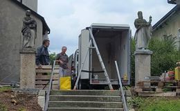 Am 16. Juli 2020 holte die Bildhauer-Restaurierungsfirma aus Weißenkirchen im Attergau die zwei Kirchenpatrone Petrus und Paulus ab. Sie sollen restauriert werden, damit sie nach der Kirchturmsanierung wieder aufgestellt werden können.